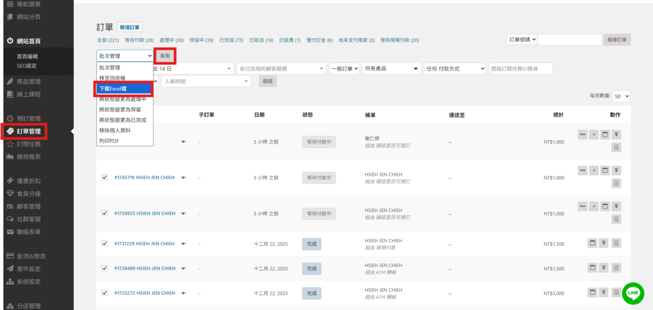 一、如何匯出訂單資料