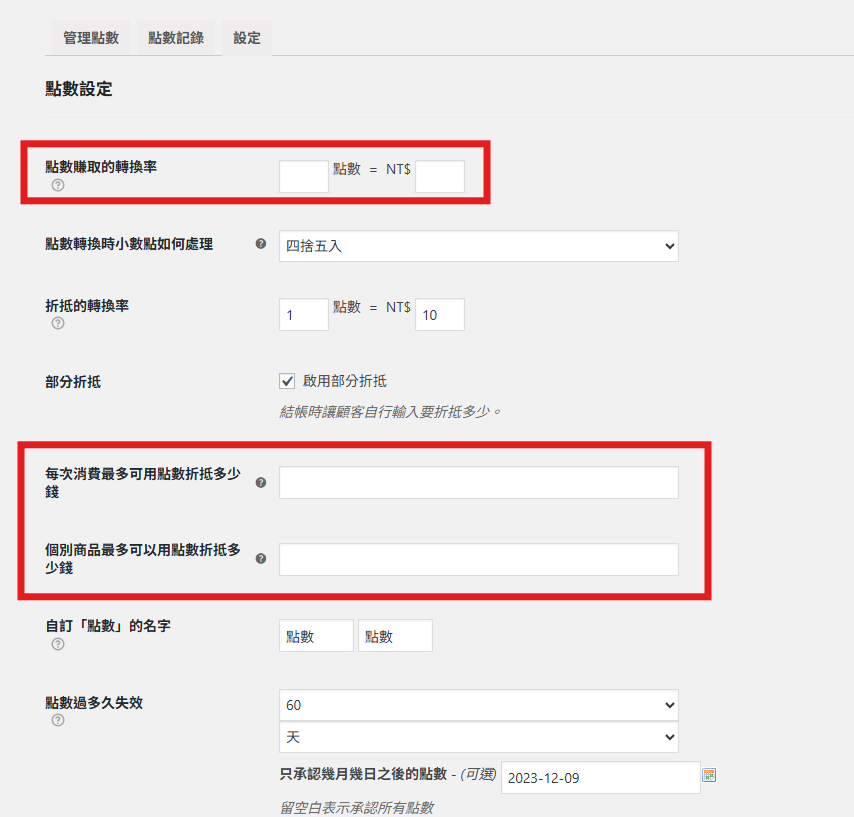 二、如何設定點數的兌換率及使用上限